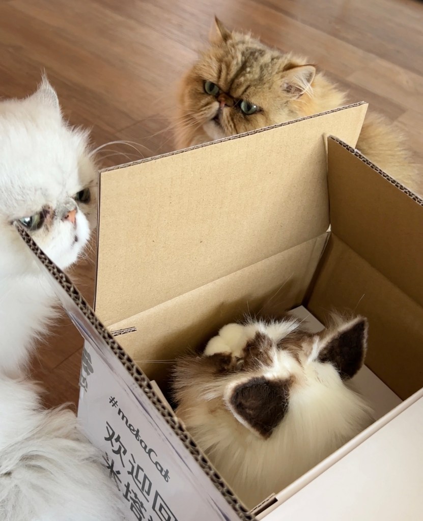 They started sniffing and exploring right away. And not just the two on the photo. My other 2 cats came to see what all the fuss was about too.
