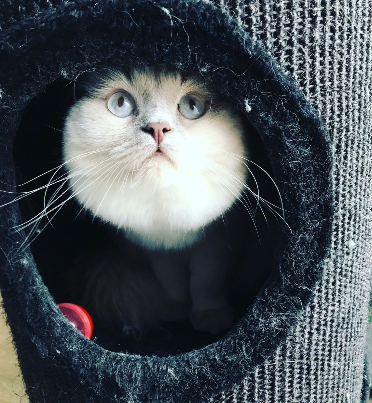 This big floof is the biggest cat in our household. Big and beautiful as we say. She’s a bit lazy and chooses her moments to play. She loves drinking water from our water fountain. And she loves playing with a ball.